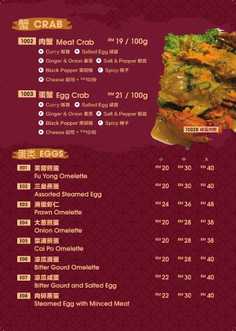 E01 芙蓉煎蛋 RM 20 RM 30 RM 40
