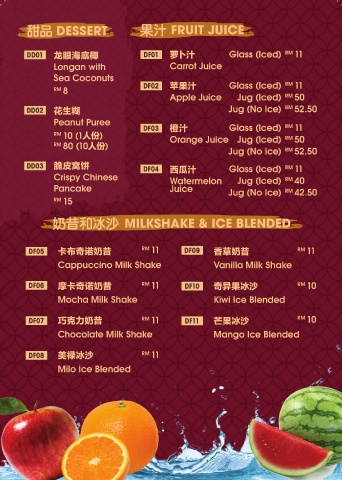 DF07 巧克力奶昔 RM 11 DF11 芒果冰沙 RM 10