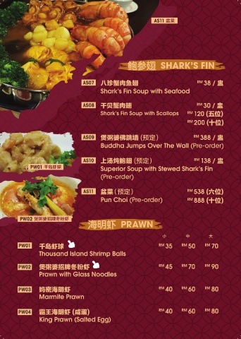 PW03 妈密海明虾 RM 40 RM 60 RM 80
