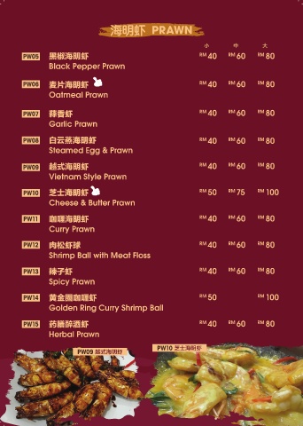 PW11 咖喱海明虾 RM 40 RM 60 RM 80
